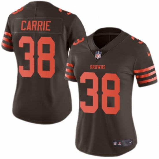 Women's Nike Cleveland Browns #38 T. J. Carrie Limited Brown Rush Vapor Untouchable NFL Jersey