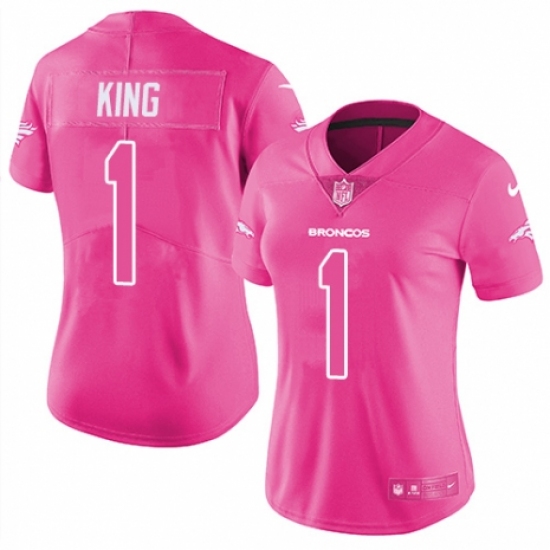 Women's Nike Denver Broncos #1 Marquette King Limited Pink Rush Fashion NFL Jersey