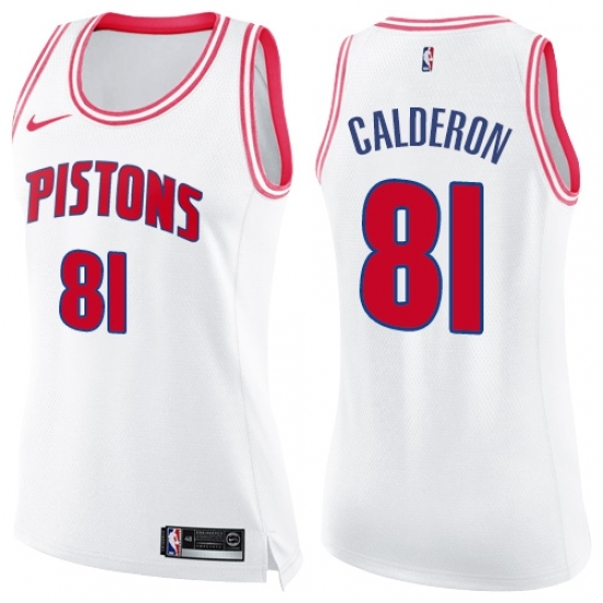 Women's Nike Detroit Pistons #81 Jose Calderon Swingman White Pink Fashion NBA Jersey