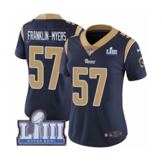 >Women's Nike Los Angeles Rams #57 John Franklin-Myers Navy Blue Team Color Vapor Untouchable Limited Player Super Bowl LIII Bound NFL Jersey