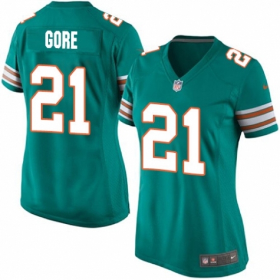Women's Nike Miami Dolphins #21 Frank Gore Game Aqua Green Alternate NFL Jersey