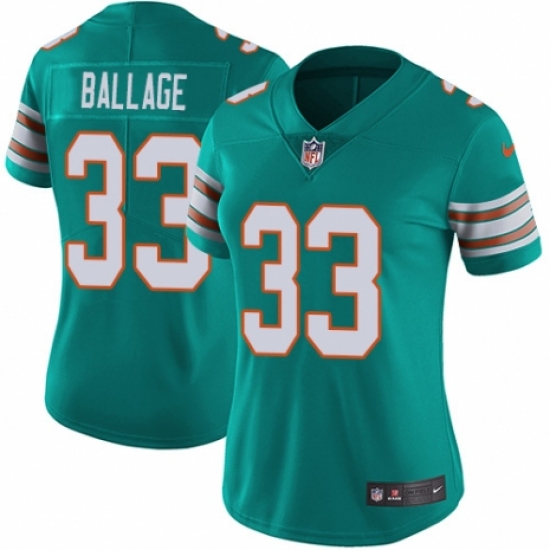 >Women's Nike Miami Dolphins #33 Kalen Ballage Aqua Green Alternate Vapor Untouchable Elite Player NFL Jersey