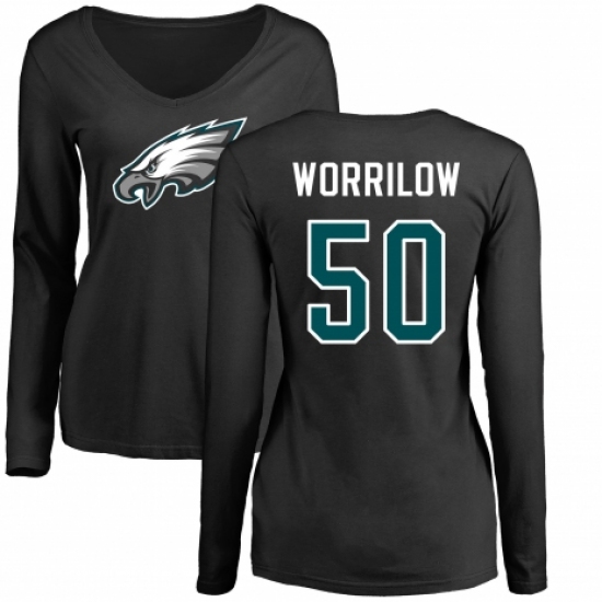 >Women's Nike Philadelphia Eagles #50 Paul Worrilow Black Name & Number Logo Slim Fit Long Sleeve T-Shirt.