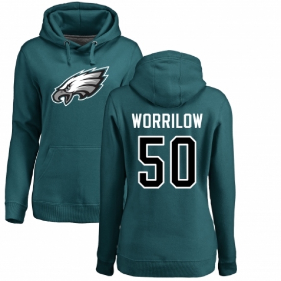 Women's Nike Philadelphia Eagles #50 Paul Worrilow Green Name & Number Logo Pullover Hoodie