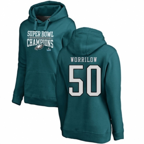 >Women's Nike Philadelphia Eagles #50 Paul Worrilow Green Super Bowl LII Champions Pullover Hoodie