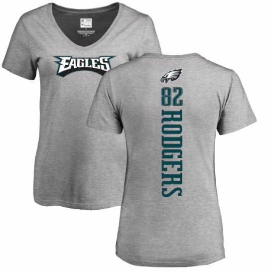 >Women's Nike Philadelphia Eagles #82 Richard Rodgers Ash Backer V-Neck T-Shirt