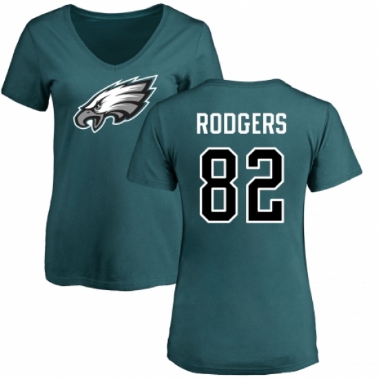 >Women's Nike Philadelphia Eagles #82 Richard Rodgers Green Name & Number Logo Slim Fit T-Shirt