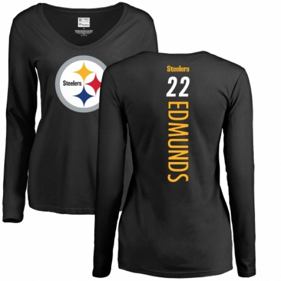 Women's Nike Pittsburgh Steelers #22 Terrell Edmunds Black Backer Slim Fit Long Sleeve T-Shirt