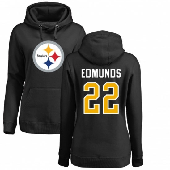 Women's Nike Pittsburgh Steelers #22 Terrell Edmunds Black Name & Number Logo Pullover Hoodie