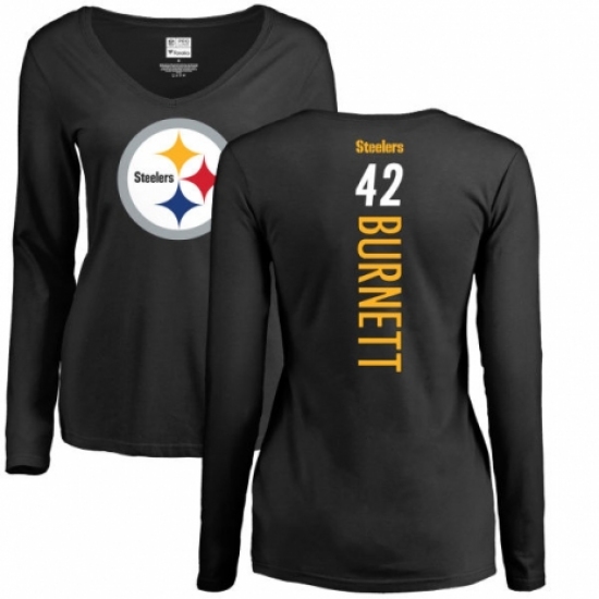 >Women's Nike Pittsburgh Steelers #42 Morgan Burnett Black Backer Slim Fit Long Sleeve T-Shirt