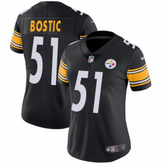 >Women's Nike Pittsburgh Steelers #51 Jon Bostic Black Team Color Vapor Untouchable Limited Player NFL Jersey