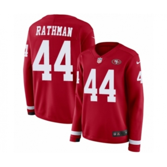 >Women's Nike San Francisco 49ers #44 Tom Rathman Limited Red Therma Long Sleeve NFL Jersey