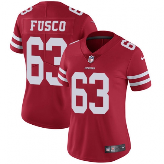 Women's Nike San Francisco 49ers #63 Brandon Fusco Elite Red Team Color NFL Jersey