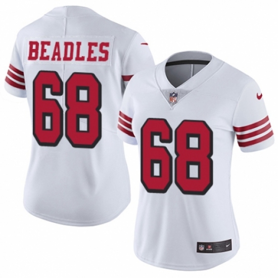 Women's Nike San Francisco 49ers #68 Zane Beadles White Vapor Untouchable Limited Player NFL Jersey