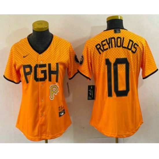 Women's Pittsburgh Pirates #10 Bryan Reynolds Yellowd 2023 City Connect Stitched Jersey 1