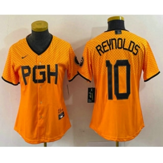 Women's Pittsburgh Pirates #10 Bryan Reynolds Yellowd 2023 City Connect Stitched Jersey