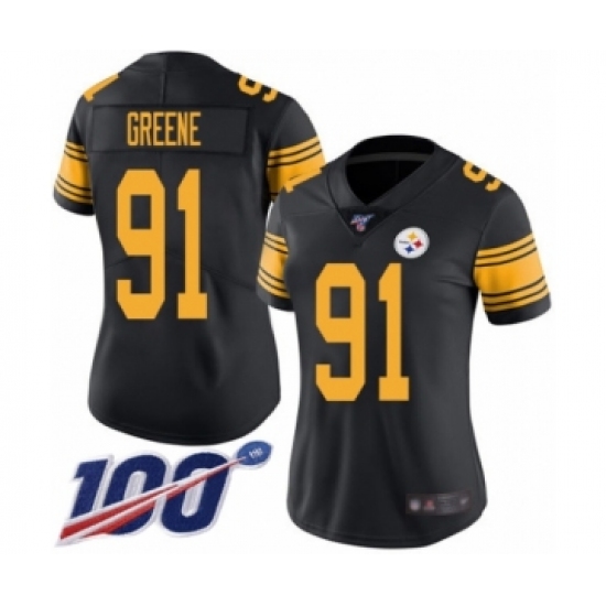 Women's Pittsburgh Steelers #91 Kevin Greene Limited Black Rush Vapor Untouchable 100th Season Football Jersey