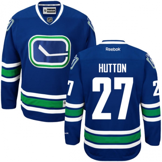 Home>NHL>Vancouver Canucks>Ben Hutton>Women's Reebok Vancouver Canucks #27 Ben Hutton Authentic Royal Blue Third NHL Jersey