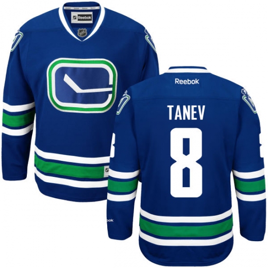 Home>NHL>Vancouver Canucks>Christopher Tanev>Women's Reebok Vancouver Canucks #8 Christopher Tanev Premier Royal Blue Third NHL Jersey