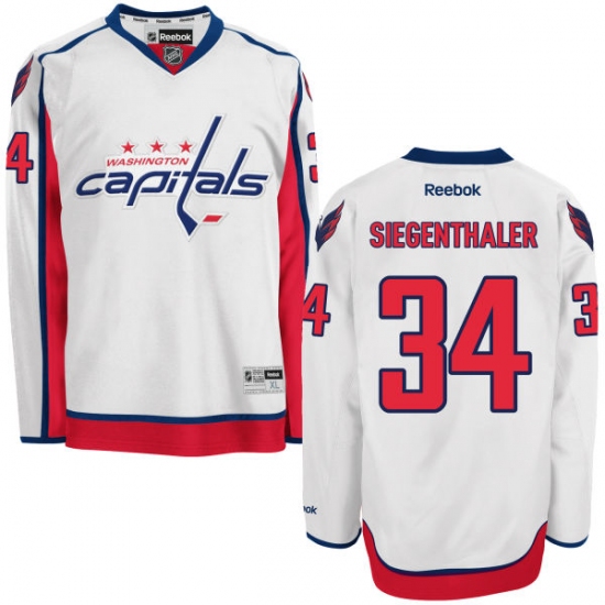 Home>NHL>Washington Capitals>Jonas Siegenthaler>Women's Reebok Washington Capitals #34 Jonas Siegenthaler Authentic White Away NHL Jersey