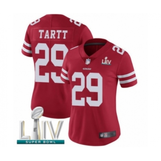 >Women's San Francisco 49ers #29 Jaquiski Tartt Red Team Color Vapor Untouchable Limited Player Super Bowl LIV Bound Football Jersey