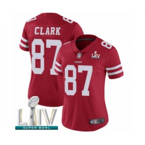 >Women's San Francisco 49ers #87 Dwight Clark Red Team Color Vapor Untouchable Limited Player Super Bowl LIV Bound Football Jersey