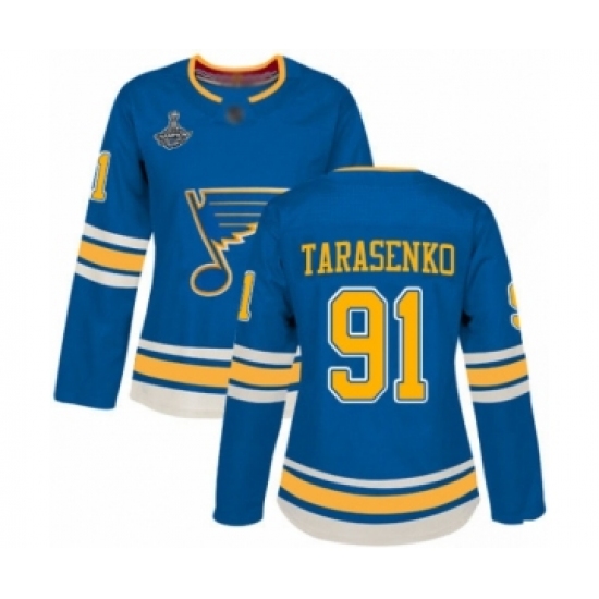 Women's St. Louis Blues #91 Vladimir Tarasenko Authentic Navy Blue Alternate 2019 Stanley Cup Champions Hockey Jersey