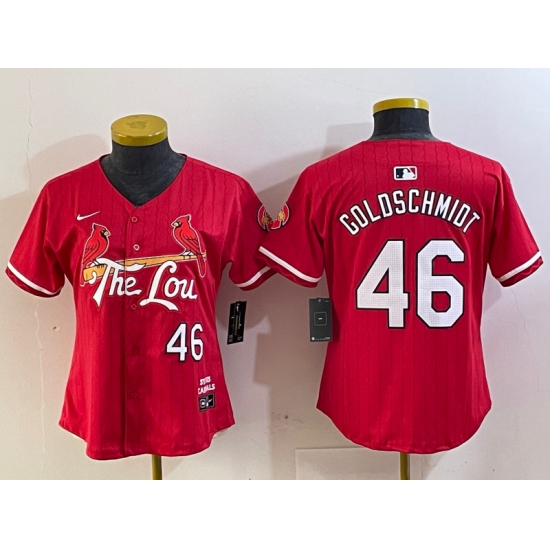 >Women's St Louis Cardinals #46 Paul Goldschmidt Red 2024 City Connect Limited Stitched Jersey