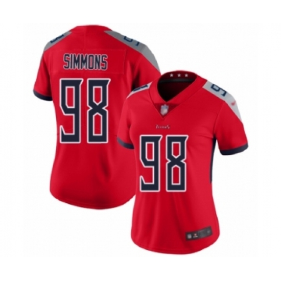 >Women's Tennessee Titans #98 Jeffery Simmons Limited Red Inverted Legend Football Jersey