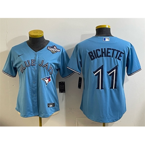 >Women's Toronto Blue Jays #11 Bo Bichette Blue 2025 World Series Cool Base Stitched Baseball Jersey(Run Small)