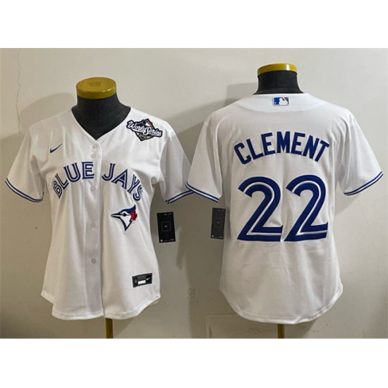 Women's Toronto Blue Jays #22 Ernie Clement White 2025 World Series Home Cool Base Stitched Baseball Jersey(Run Small)