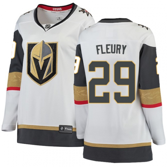 >Women's Vegas Golden Knights #29 Marc-Andre Fleury Authentic White Away Fanatics Branded Breakaway NHL Jersey