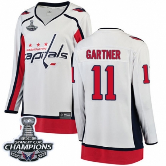 Women's Adidas Washington Capitals #11 Mike Gartner Authentic White Away 2018 Stanley Cup Final Champions NHL Jersey