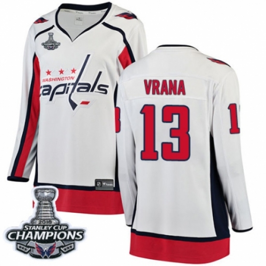 Women's Washington Capitals #13 Jakub Vrana Fanatics Branded White Away Breakaway 2018 Stanley Cup Final Champions NHL Jersey