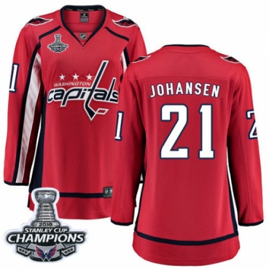 >Women's Washington Capitals #21 Lucas Johansen Fanatics Branded Red Home Breakaway 2018 Stanley Cup Final Champions NHL Jersey
