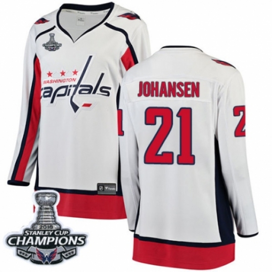 Women's Washington Capitals #21 Lucas Johansen Fanatics Branded White Away Breakaway 2018 Stanley Cup Final Champions NHL Jersey