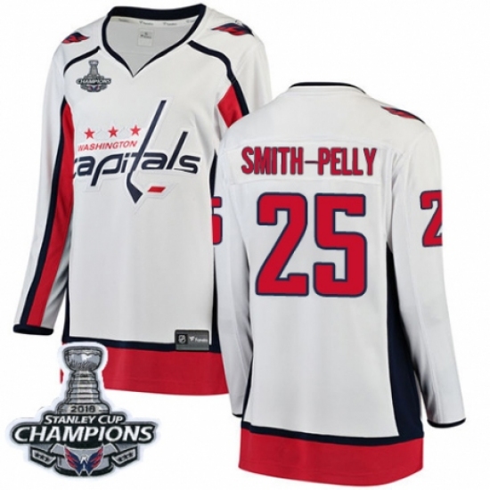 Women's Washington Capitals #25 Devante Smith-Pelly Fanatics Branded White Away Breakaway 2018 Stanley Cup Final Champions NHL Jersey