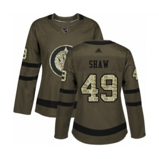 Women's Winnipeg Jets #49 Logan Shaw Authentic Green Salute to Service Hockey Jersey