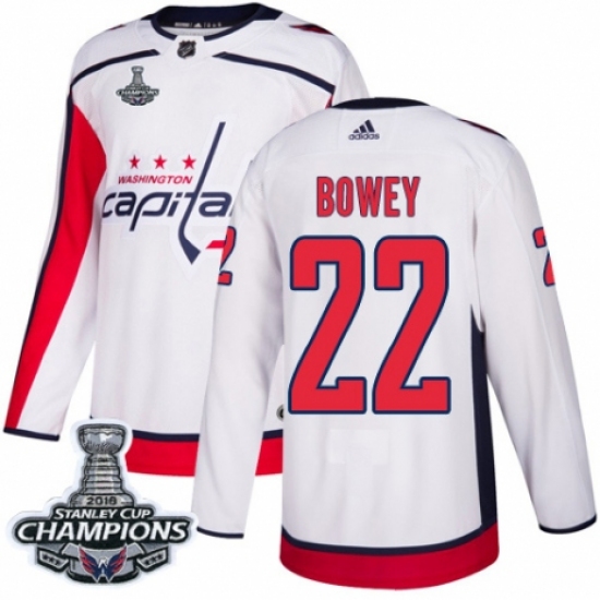 Youth Adidas Washington Capitals #22 Madison Bowey Authentic White Away 2018 Stanley Cup Final Champions NHL Jersey