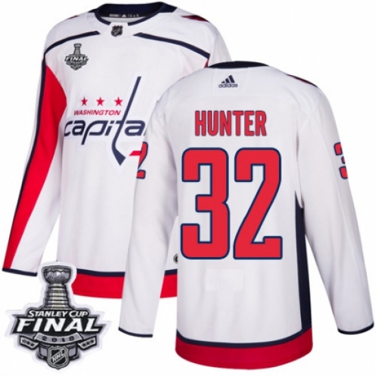 Youth Adidas Washington Capitals #32 Dale Hunter Authentic White Away 2018 Stanley Cup Final NHL Jersey
