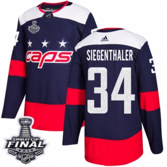 >Youth Adidas Washington Capitals #34 Jonas Siegenthaler Authentic Navy Blue 2018 Stadium Series 2018 Stanley Cup Final NHL Jersey