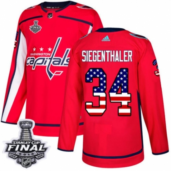 Youth Adidas Washington Capitals #34 Jonas Siegenthaler Authentic Red USA Flag Fashion 2018 Stanley Cup Final NHL Jersey