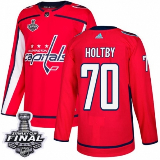 Youth Adidas Washington Capitals #70 Braden Holtby Authentic Red Home 2018 Stanley Cup Final NHL Jersey
