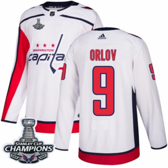 Youth Adidas Washington Capitals #9 Dmitry Orlov Authentic White Away 2018 Stanley Cup Final Champions NHL Jersey