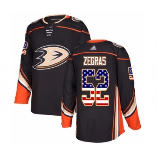 >Youth Anaheim Ducks #52 Trevor Zegras Authentic Black USA Flag Fashion Hockey Jersey