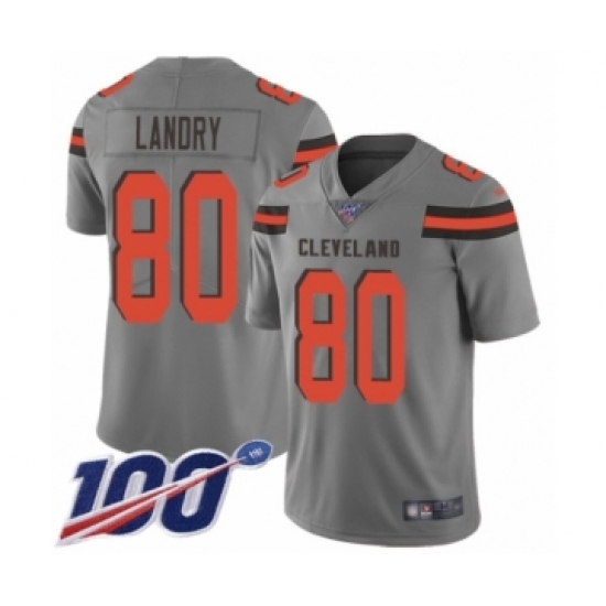 >Youth Cleveland Browns #80 Jarvis Landry Limited Gray Inverted Legend 100th Season Football Jersey
