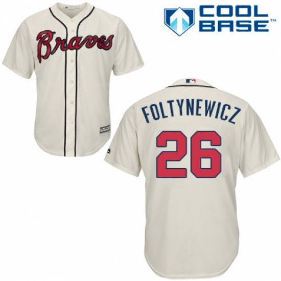 Youth Majestic Atlanta Braves #26 Mike Foltynewicz Replica Cream Alternate 2 Cool Base MLB Jersey