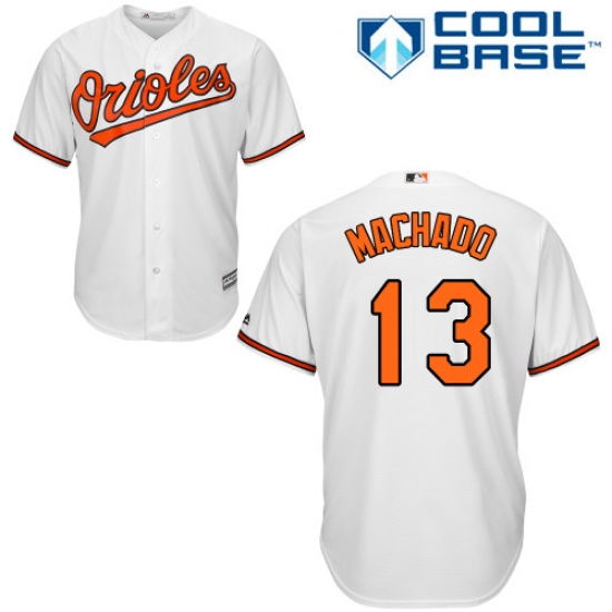 Home>MLB>Baltimore Orioles>Manny Machado>Youth Majestic Baltimore Orioles #13 Manny Machado Replica White Home Cool Base MLB Jersey