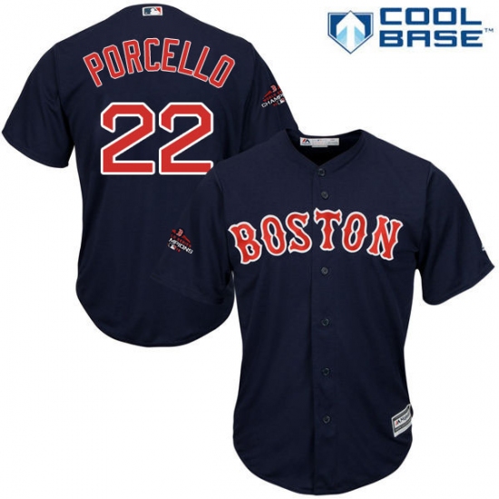 >Youth Majestic Boston Red Sox #22 Rick Porcello Authentic Navy Blue Alternate Road Cool Base 2018 World Series Champions MLB Jersey
