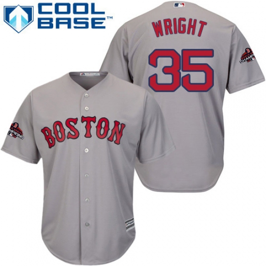 >Youth Majestic Boston Red Sox #35 Steven Wright Authentic Grey Road Cool Base 2018 World Series Champions MLB Jersey